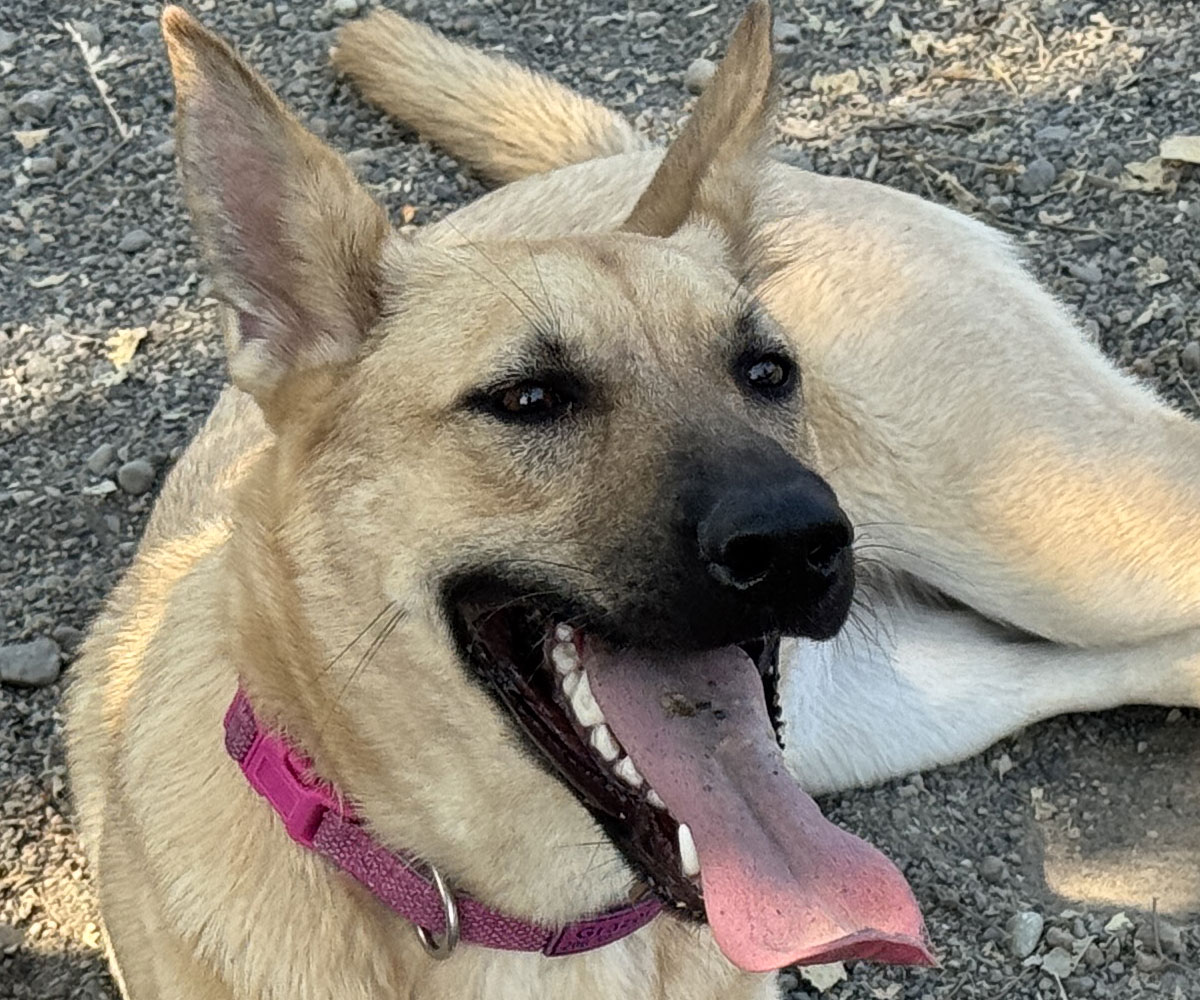 One of the fun things about owning a dog is letting them run around and play. Here's a picture of our dog after a fun day at the dog park. One hot dog!