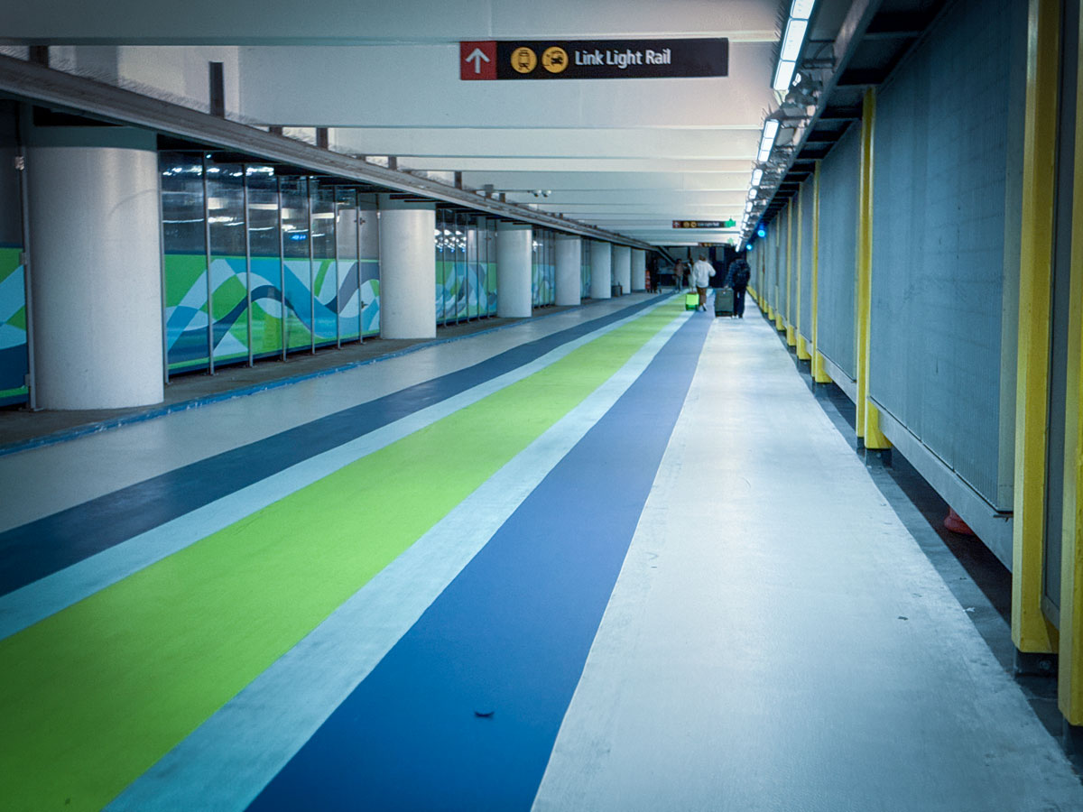 Here's a shot of the walkway from Light Rail to the Airport. Love those lines.
