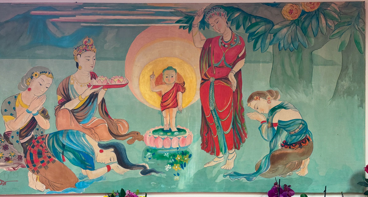 Here’s some of the cool art. It’s a series of paintings showing the life of the Buddha. This is the first one, the Buddha as a child.