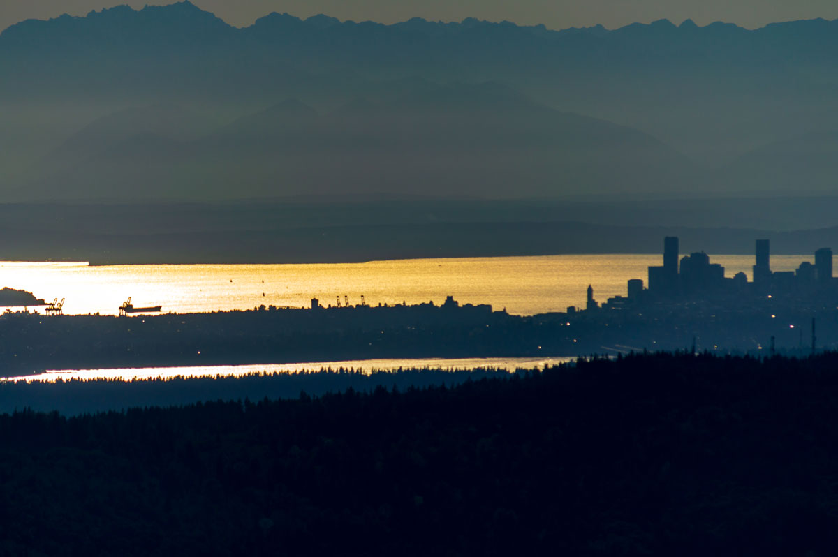 Here’s another sunset shot of Seattle, this time focusing on SODO, Pioneer Square, and the Port